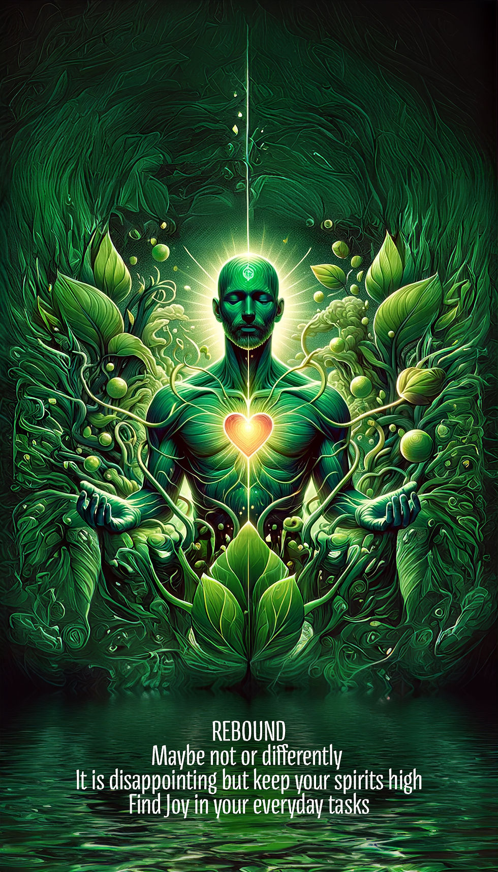 Let this card inspire you during times of flux or frustration, reminding you of the power of perspective and the strength found in a joyful heart. It’s a period to reassess your path with a focus on the intrinsic rewards of your work, to cultivate resilience in the face of challenges, and to move forward with the confidence that comes from a heart aligned with joy and purpose. The essence of the “Rebound” card lies in the transformative power of maintaining a positive spirit, guiding you to navigate your professional landscape with grace, adaptability, and a steadfast commitment to finding fulfillment in every step of the journey.